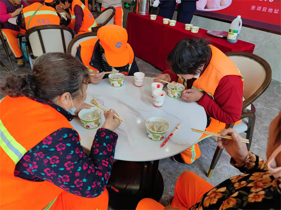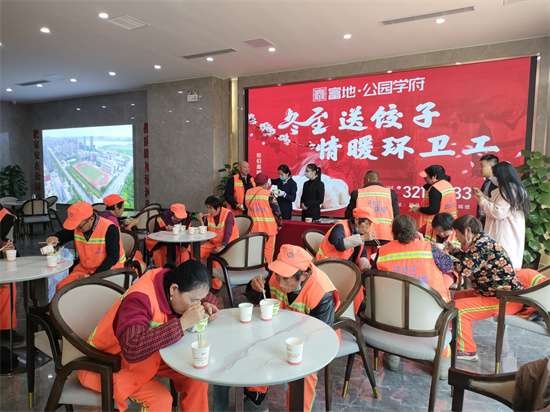 12月21日中午,富地公园学府的员工们别出心裁地邀请附近的环卫工人们聚